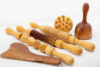 Des gestes du Drainage lymphatique et le Palper-Rouler se joignent au travail avec des instruments de bois pour rendre le soin plus complet et efficace.